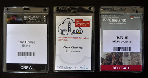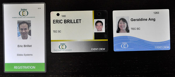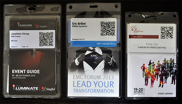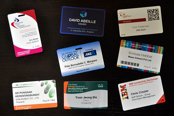 Badges can be all produced prior to event, up to 2 hours prior to the event if required. The badge design would need to be confirmed 72 hours prior to event, then the namelist should be passed to us no later than 8 hours prior to event. Alternatively, names can be entered directly into our system for us to print, without any data having to be manually exchanged. This tremendously facilitates last last minute printing of late registrants.