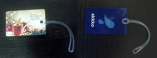 Exact same size as plastic PVC Card (86mm x 54mm) but embedded with an RFID chip (Mifare standard) for readability with RFID Readers and NFC enabled phones.