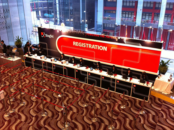 A message board can be projected on a main screen, with our message board app running and connected to our live registration database. Each time a delegate registers onsite, his particulars can be displayed as a welcoming message for all to see.